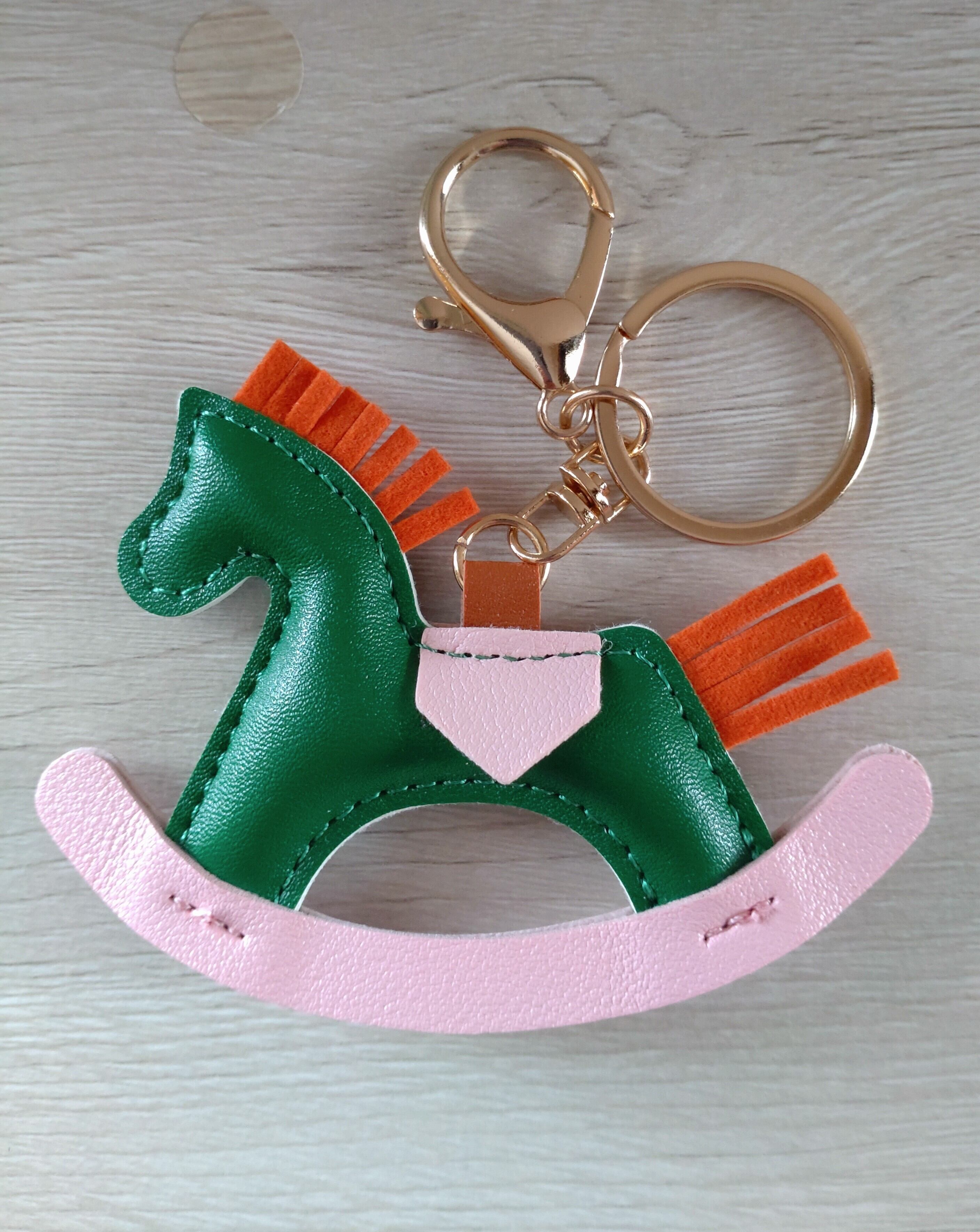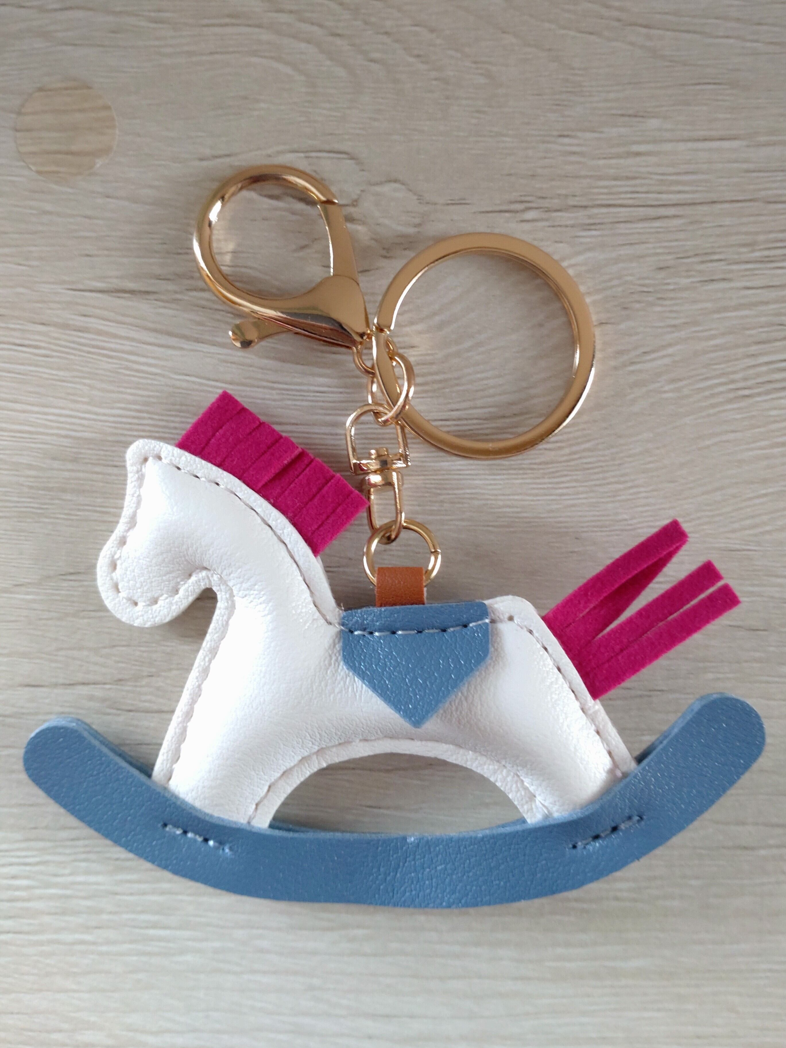 愛らしい馬のデザインが特徴のこのキーホルダーは、合皮を使用しているので、軽くて傷が付きにくいです。